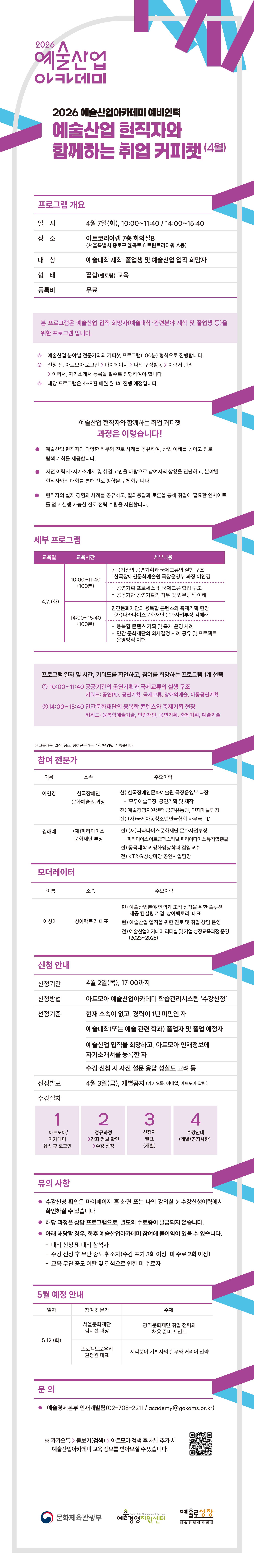 • 문의처: 예술경영지원센터 예술경제본부 인재개발팀
